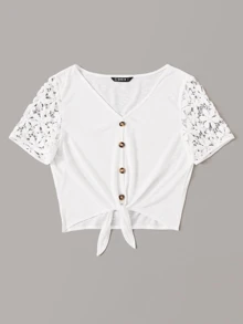 ثوب بالتخريم الحشني وحافة العقدة بالأزرار الأمامية