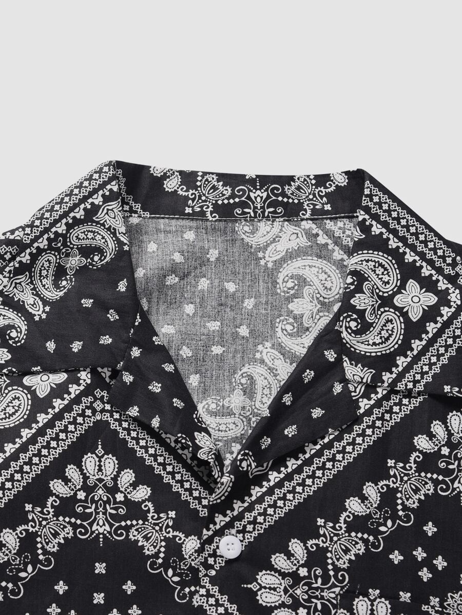 قميص بطباعة وشاح وبيزلي مع شورت 2 قطع للرجال