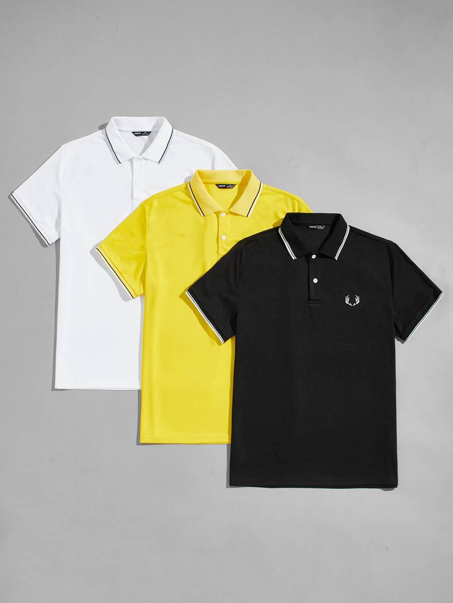 GENTILAND 3 قطع قميص بولو مطرز بتفاصيل خطوط للرجال