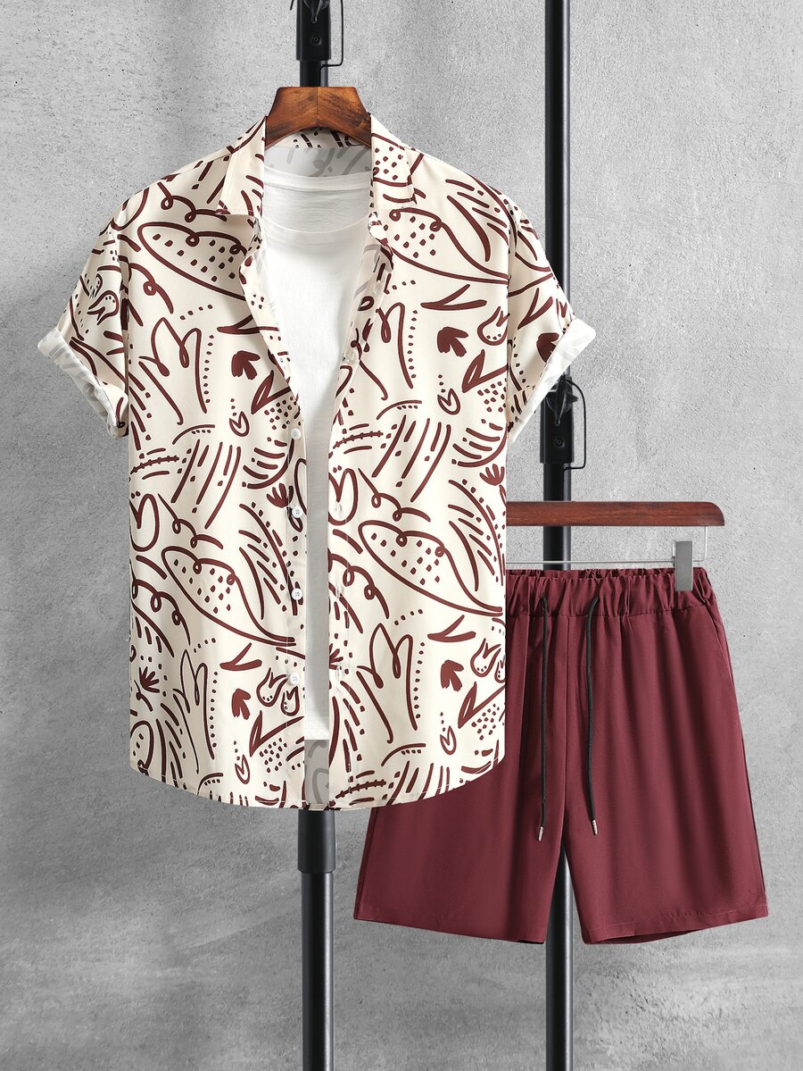 للرجال طباعة شامل قميص و رباط خصر بنطلون قصير
