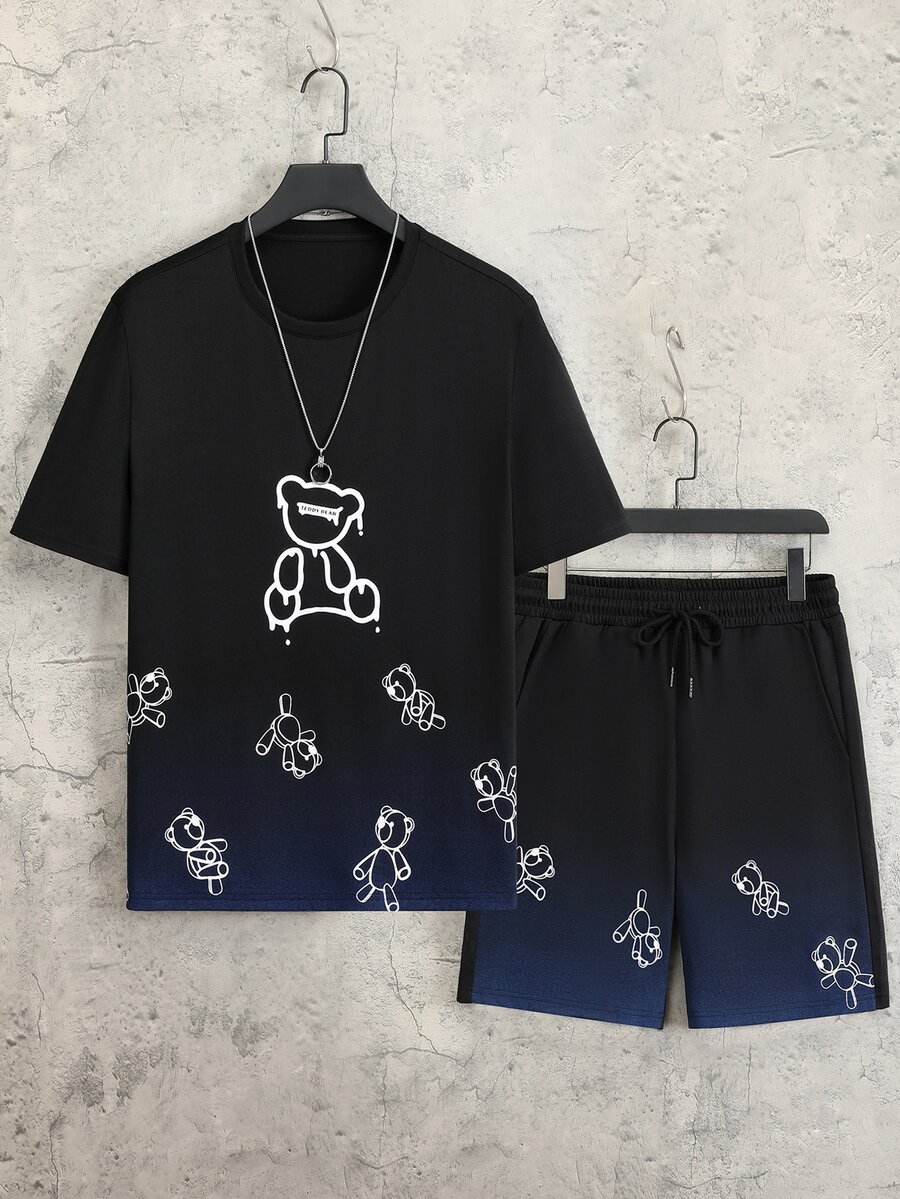 للرجال طباعة بالدب تي شيرت و رباط خصر بنطلون قصير