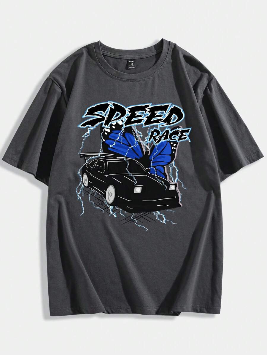 Street Life تي شيرت قطن بجرافيك سيارة وعبارة للشباب