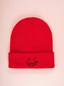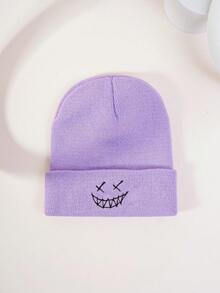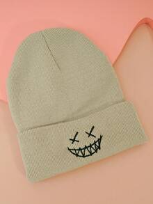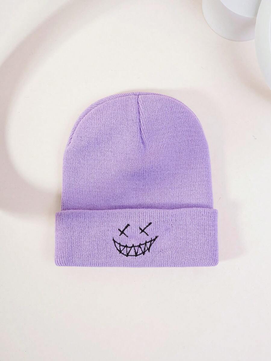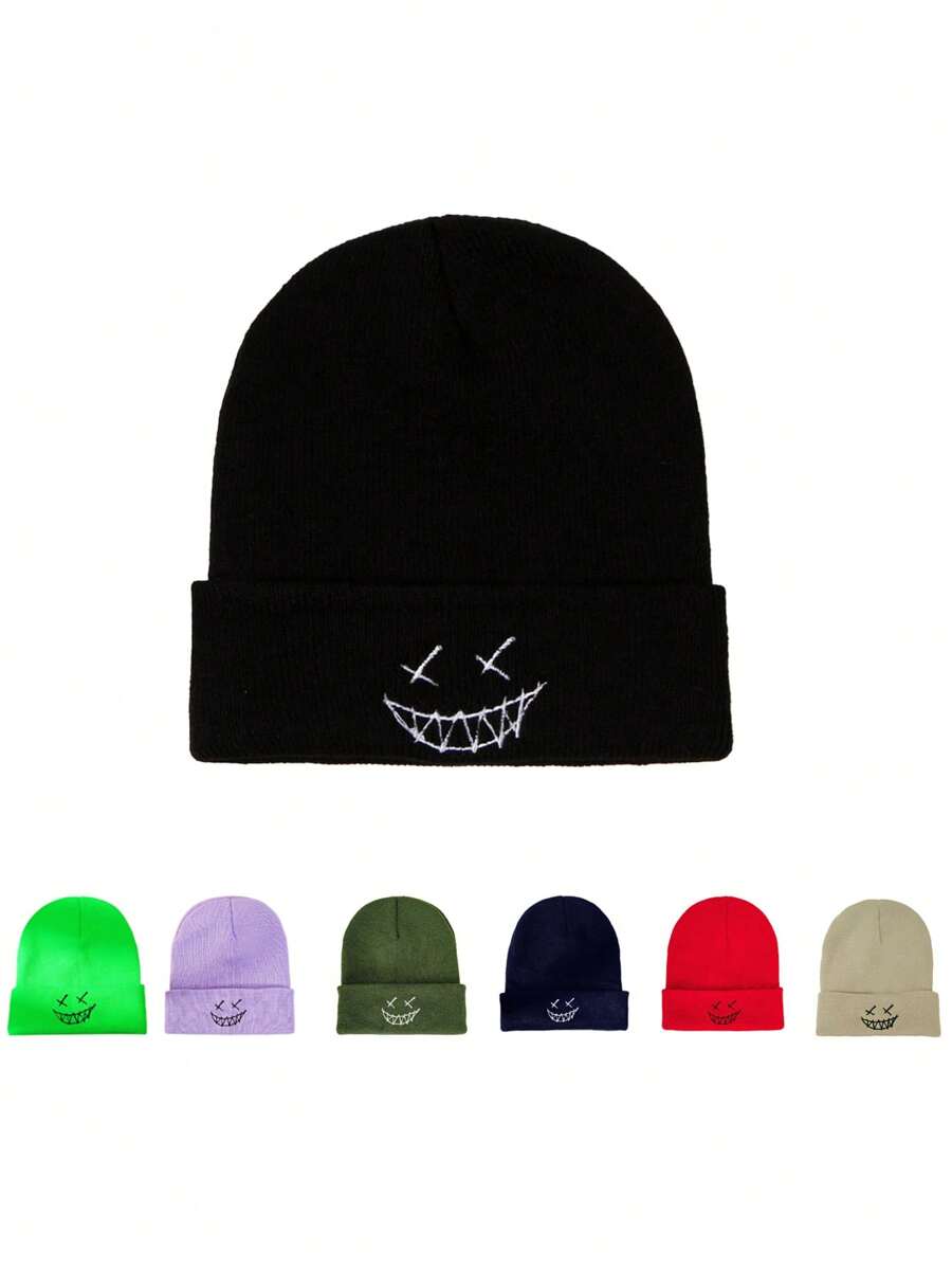قبعة شتوية محبوكة مرنة للخريف والشتاء، للجنسين، عصرية بطراز الشارع، مطرزة بالوجه، تدفئة للرأس، لباس جمجمة عارضة