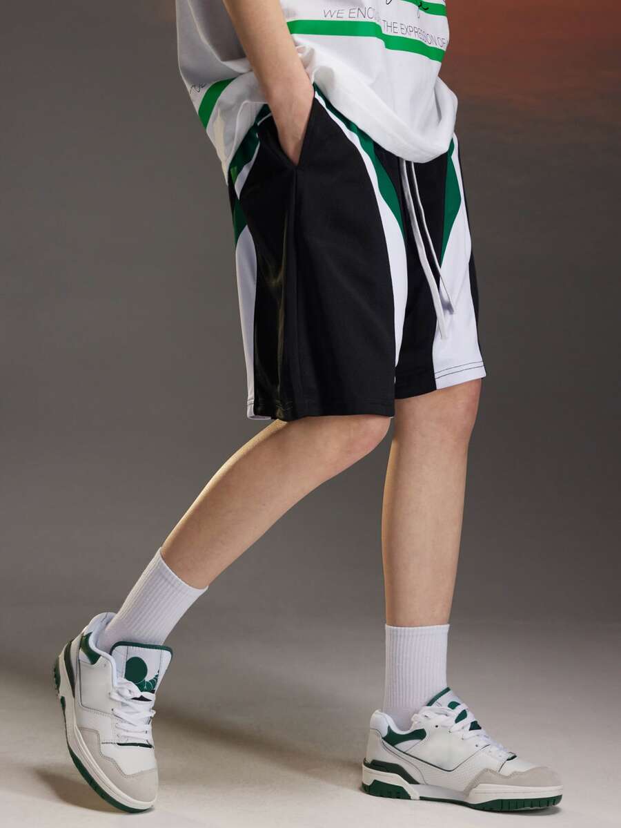 بنطلون قصير ألوان متباينة رباط خصر للرجال