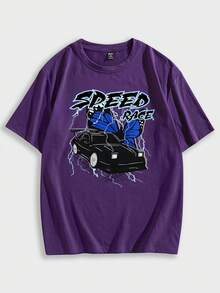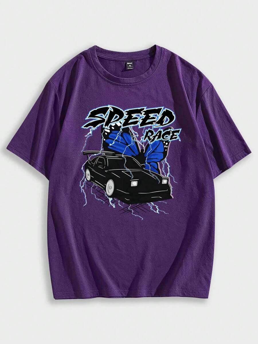 تي شيرت قطن حرف سيارة & نمط الفراشة للشباب