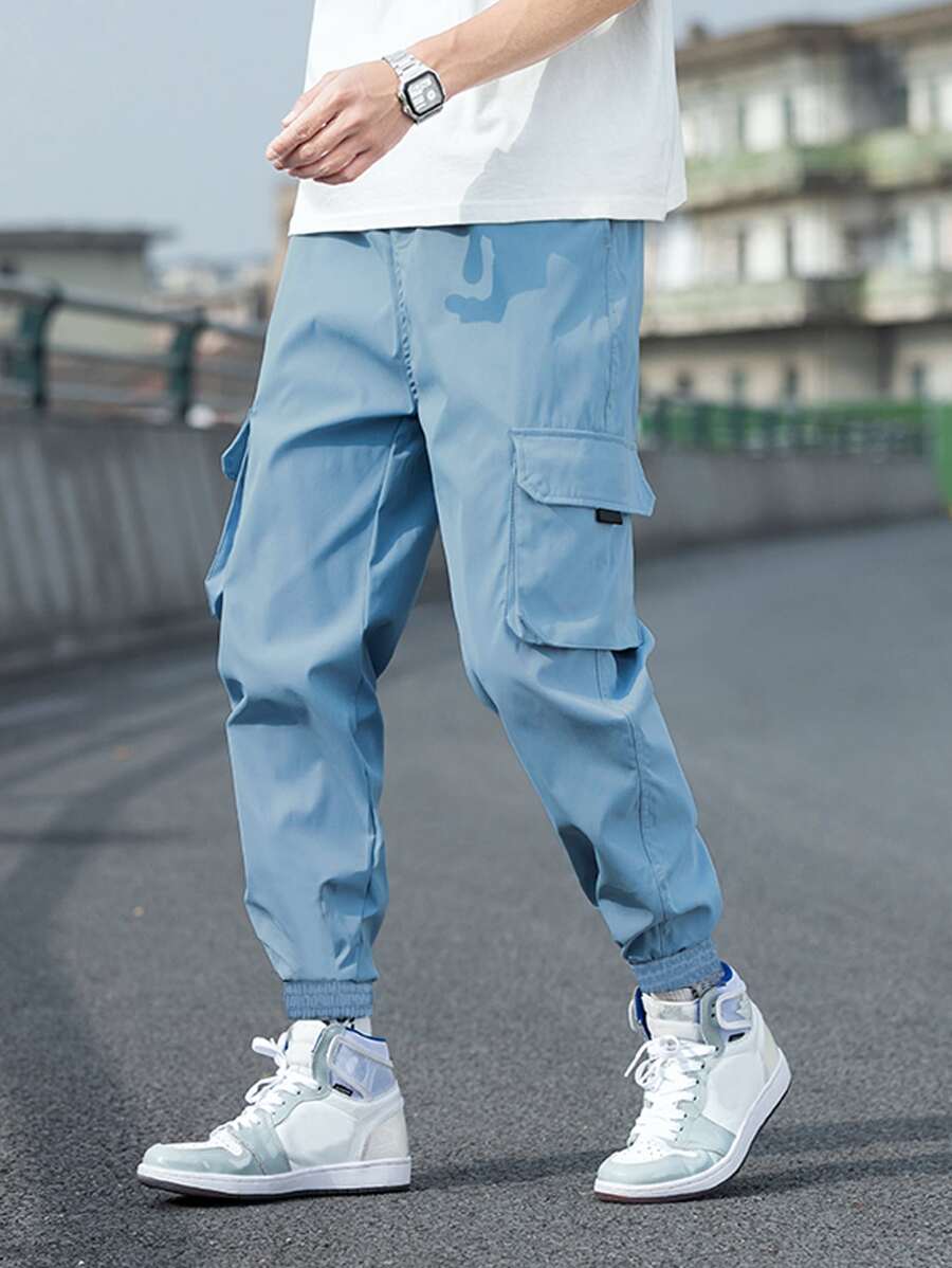 سروال شحن رجالي فضفاض بخصر قابل للشد يربط بالأربطة