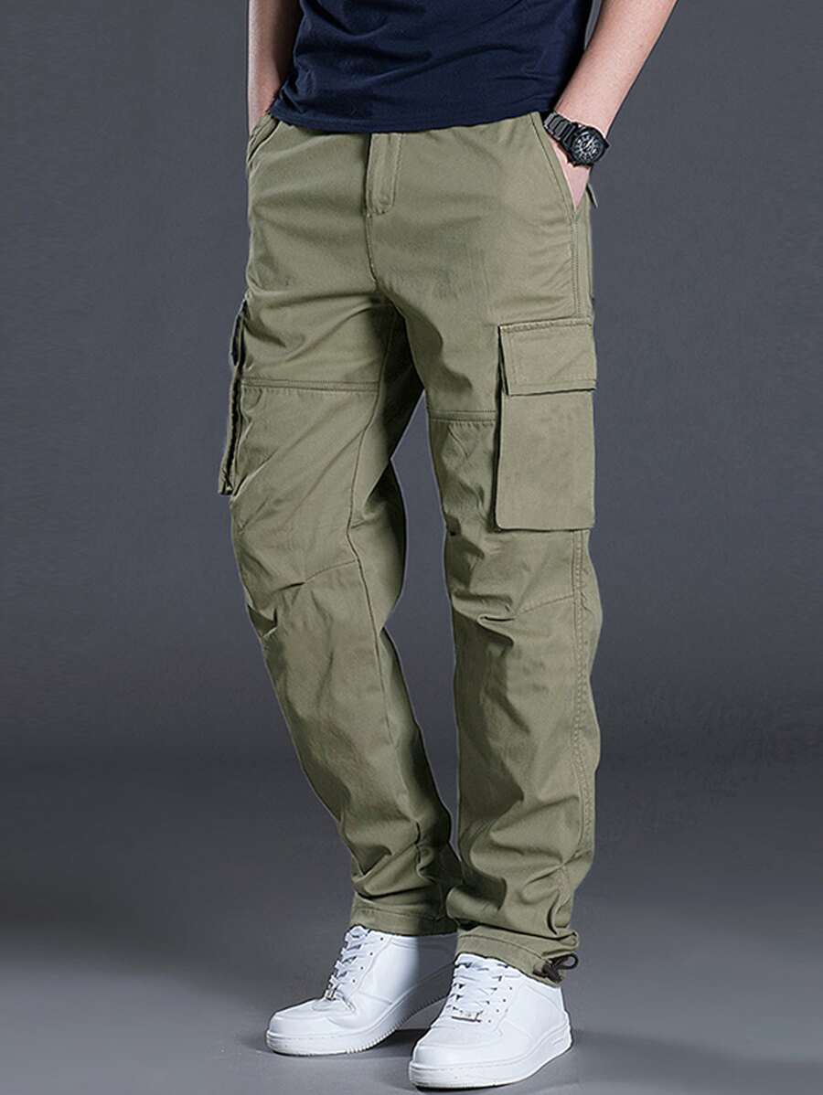 للرجال بنطلون كاجو بجيوب جيب قلاب حافة رباط