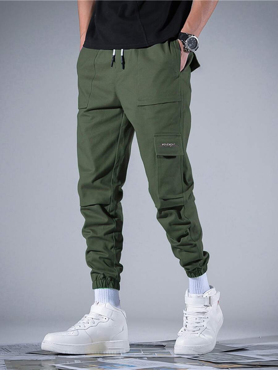 بنطلون كارجو برباط خصر وبجيب رفرف للرجال