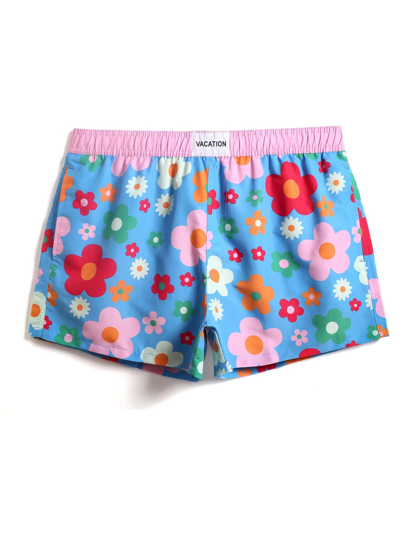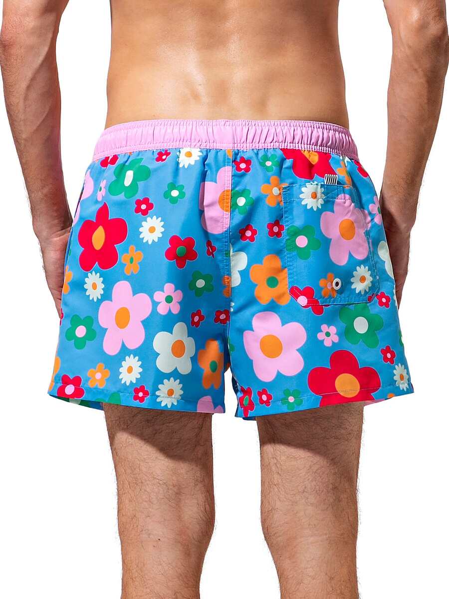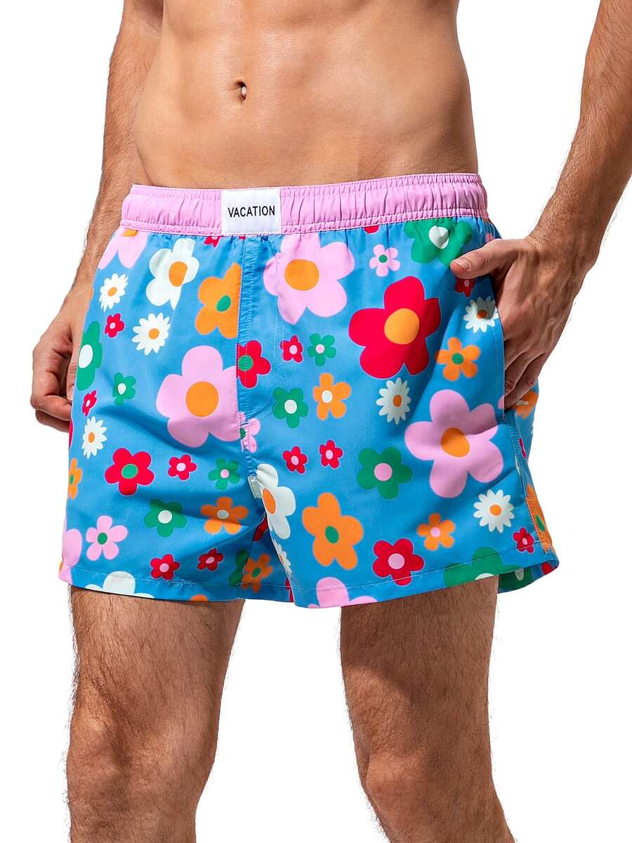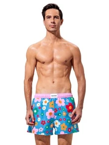 شورت سباحة ترانك طباعة الأزهار تفاصيل مرقع بعبارة للرجال