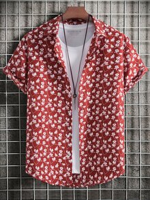 قميص طباعة الأزهار بدون تي شيرت للرجال