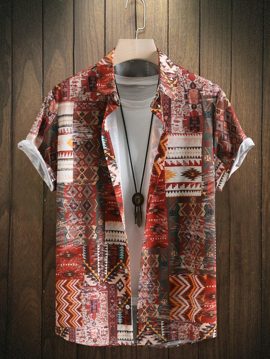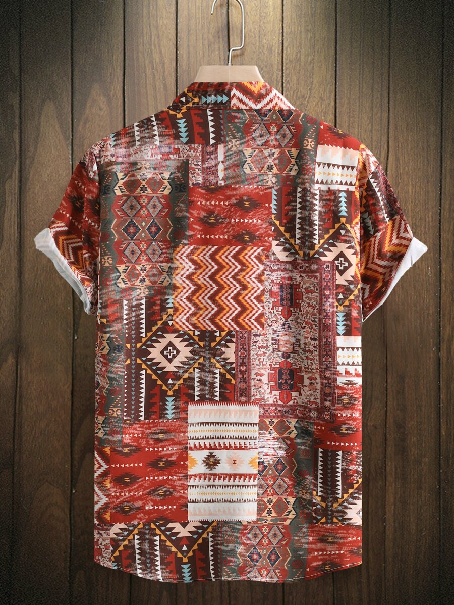 قميص طباعة هندسية بدون تي شيرت للرجال