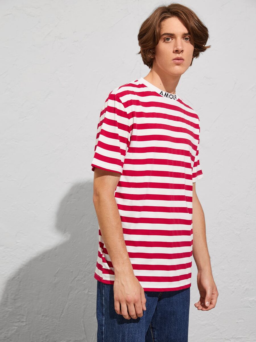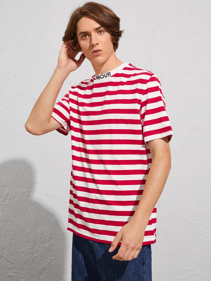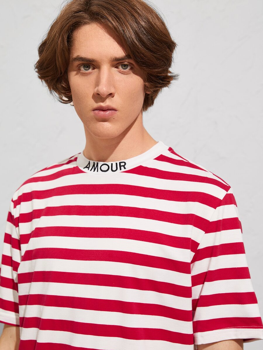 ملابس علوية كاجوال قصير الأكمام ذو تطريز حرفي على الياقة وشرائط ملونة، هدية للصديق