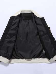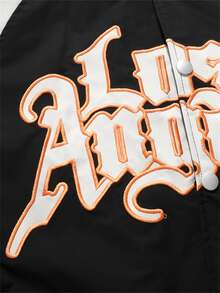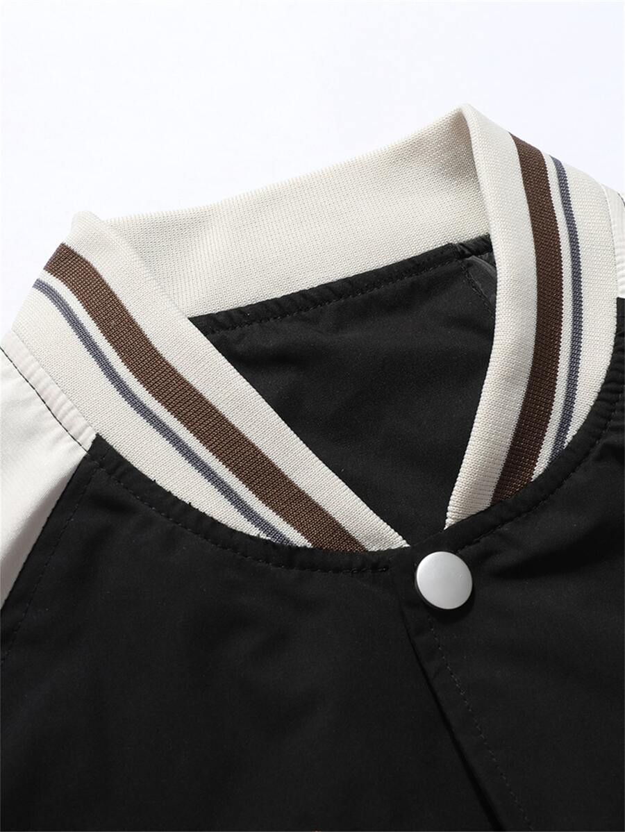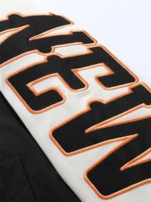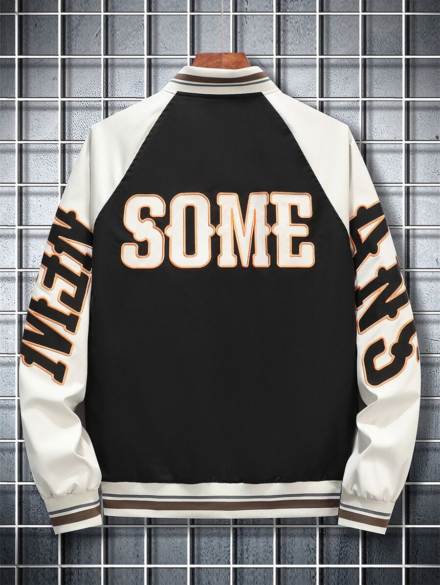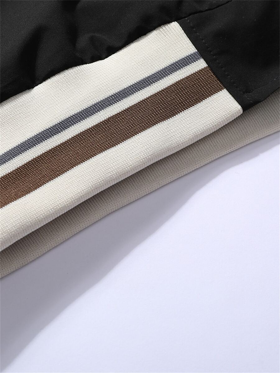 جاكيت رياضي رجالي منسدل مفصل بأكمام رجلان بتطريز حروف وتفاصيل خطوط تقسيم الألوان، بدون تيشيرت