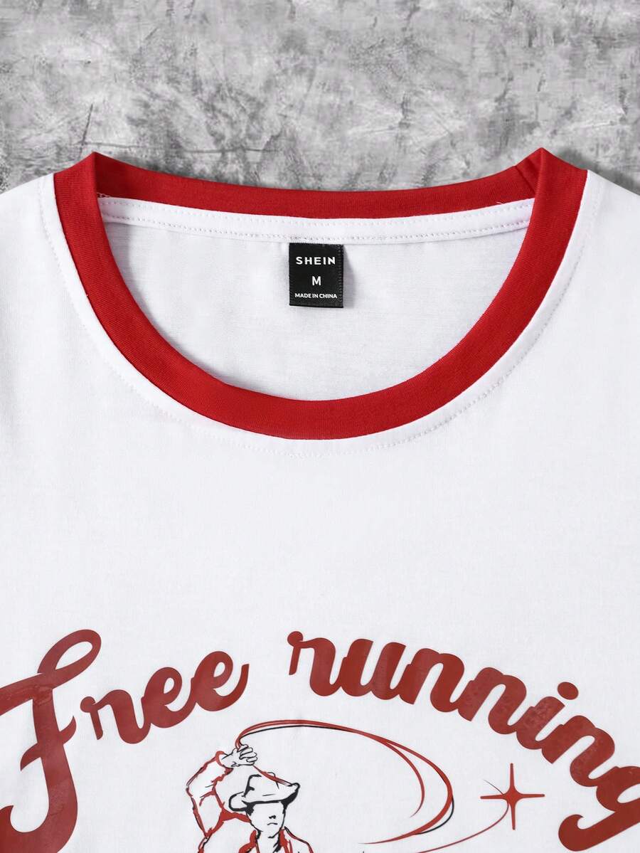 تي شيرت بجرافيك شخصية وعبارة مقلم متباين للرجال