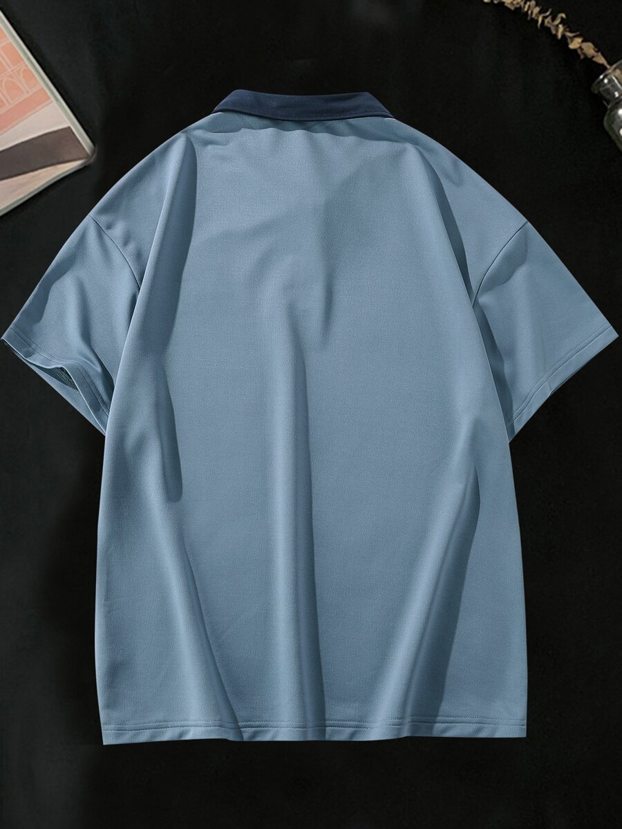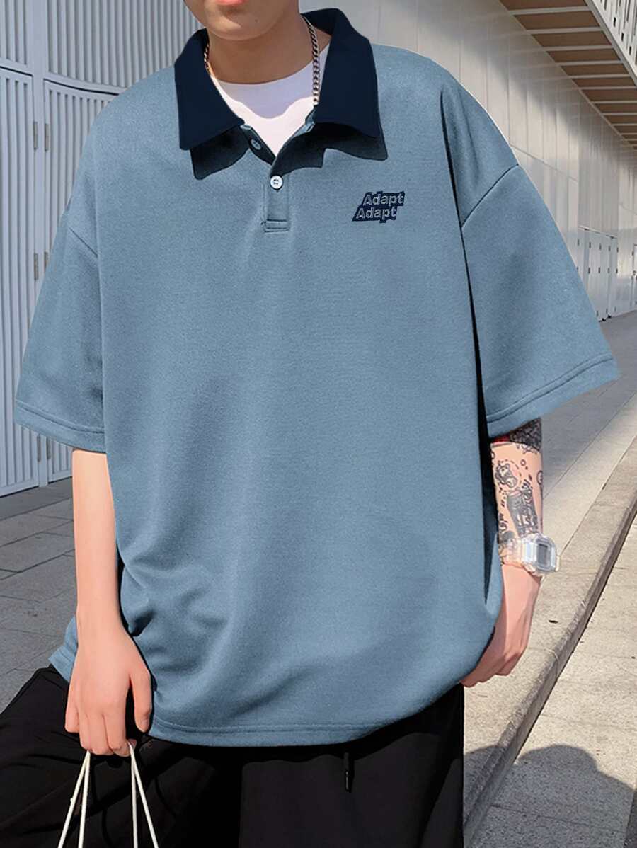 قميص بولو رجالي فضفاض مع طباعة الحروف وياقة متباينة
