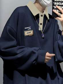 قميص بولو رجالي رسمي مريح مناسب من الأعلى مع كتابة بأحرف بارزة على الكتف