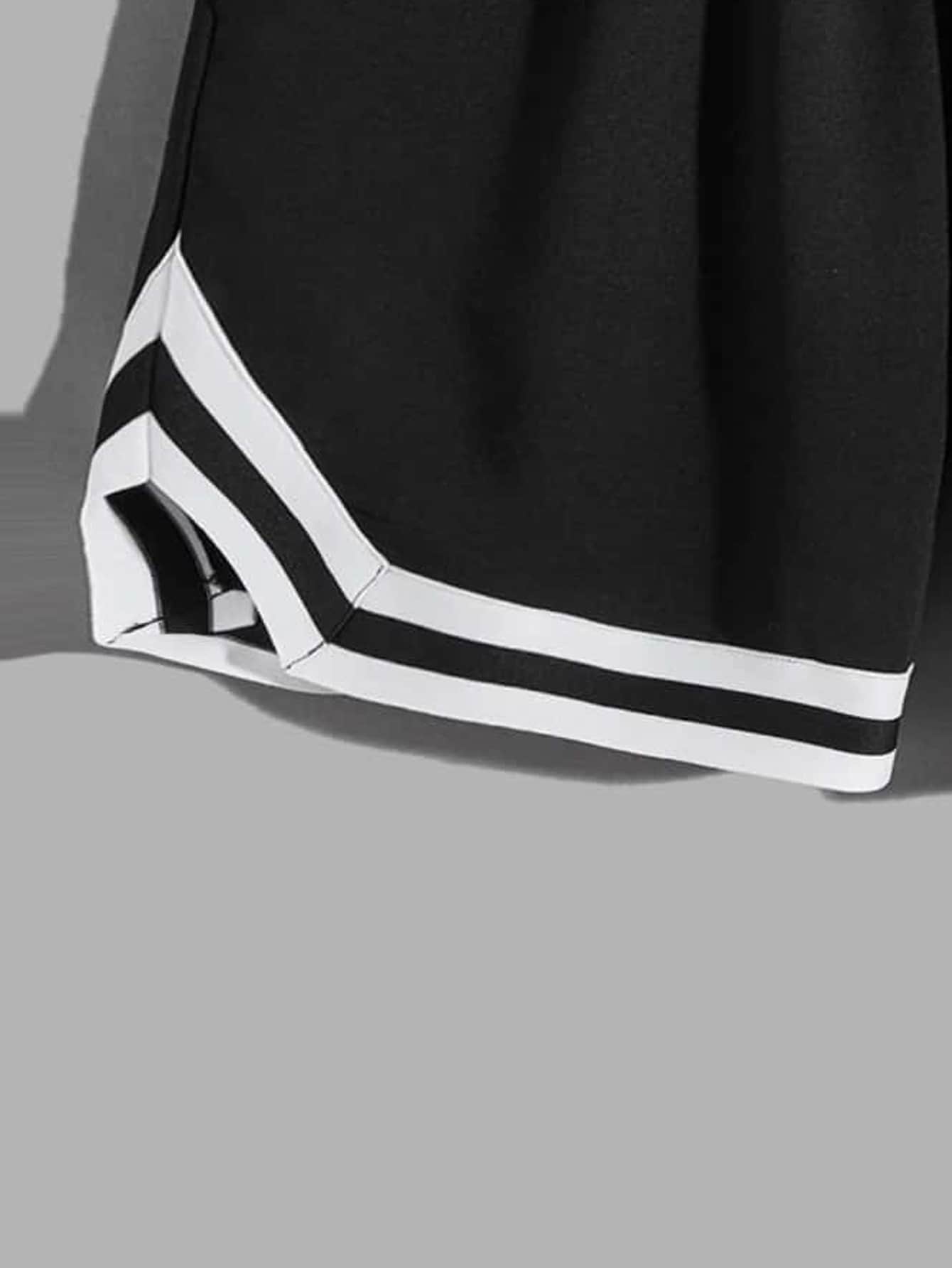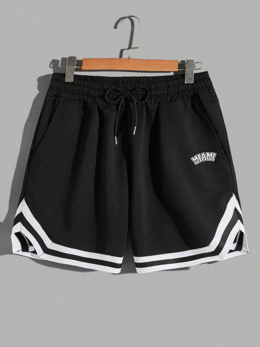 شورت رجالي فضفاض مع طباعة حرفية وتريم مخطط، خصر بسحاب، شورت رياضي بألوان متباينة، هدية للزوج أو الحبيب