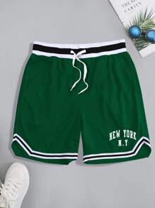 شورت رياضي للرجال بخصر رباط مزين بشريط مطبوع بالحروف وتصميم ألوان متباينة، هدية للزوج أو الحبيب