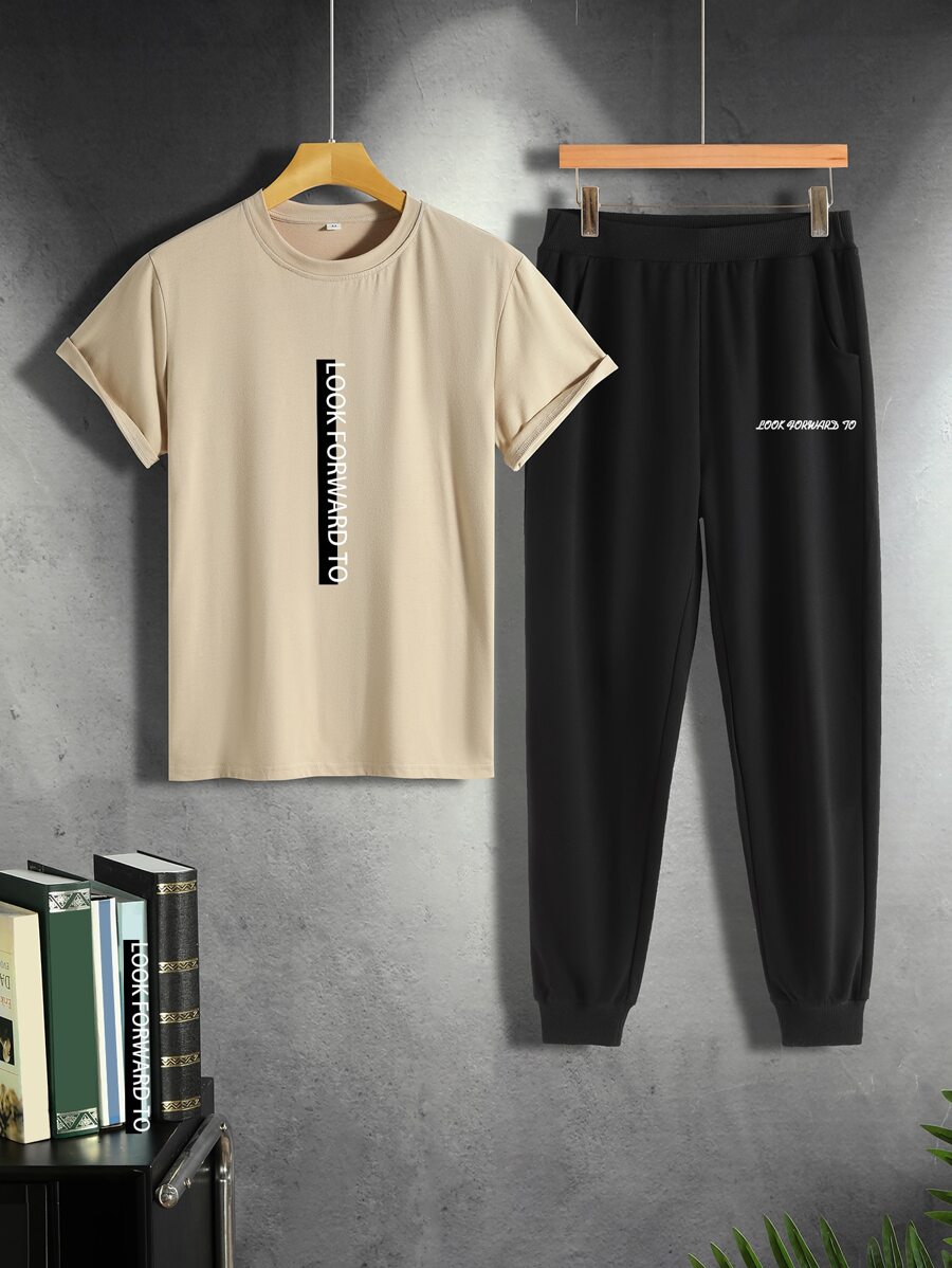 تي شيرت وبنطلون رياضي بطباعة أحرف للرجال