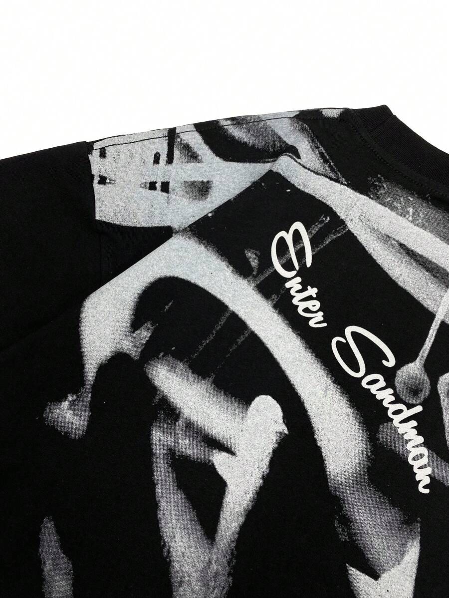 تي شيرت رجالي مطبوع بحرف، طراز إيمو، طراز 2000