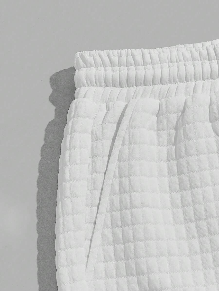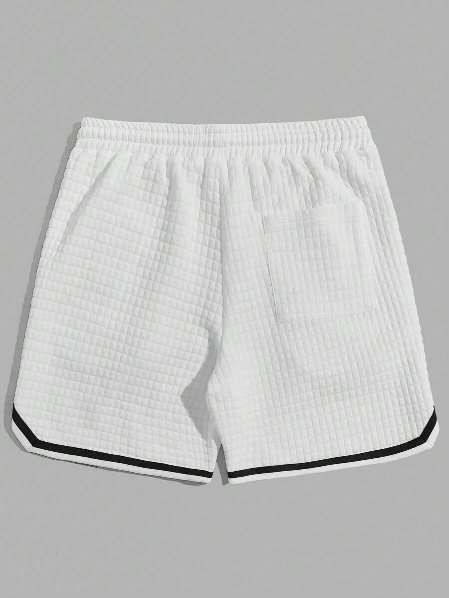 شورت جيرسيه واسع أبيض بخصر قابل للربط مع تفاصيل حرفية معلقة وتريم للتباين ، مناسب للأزواج والصديق ، للمدرسة والشارع
