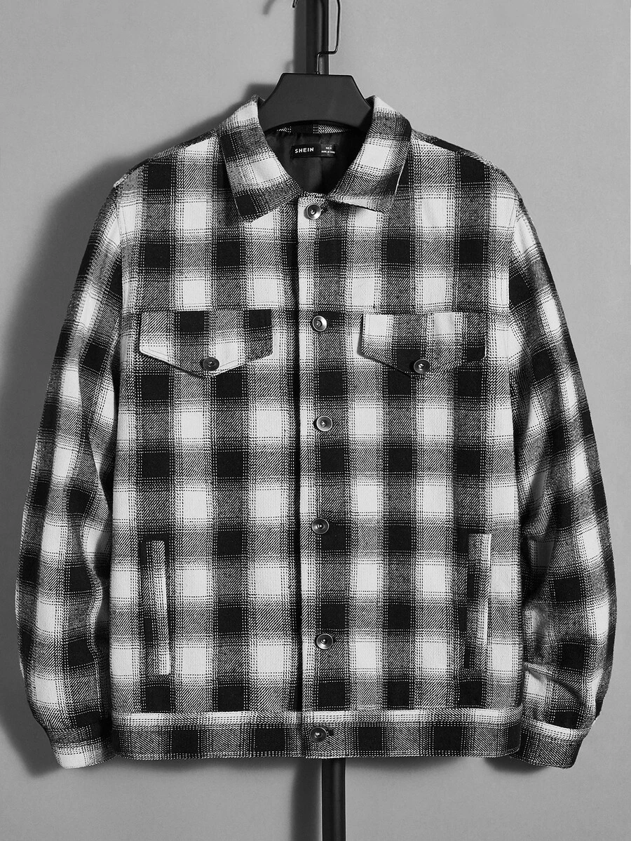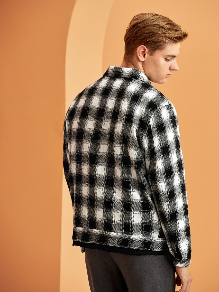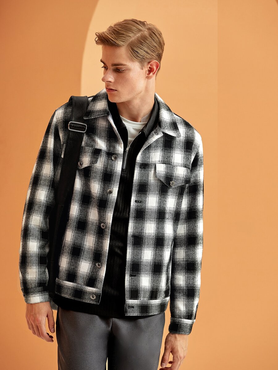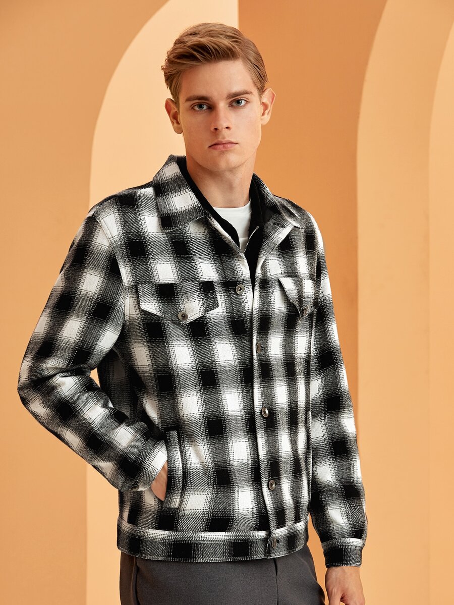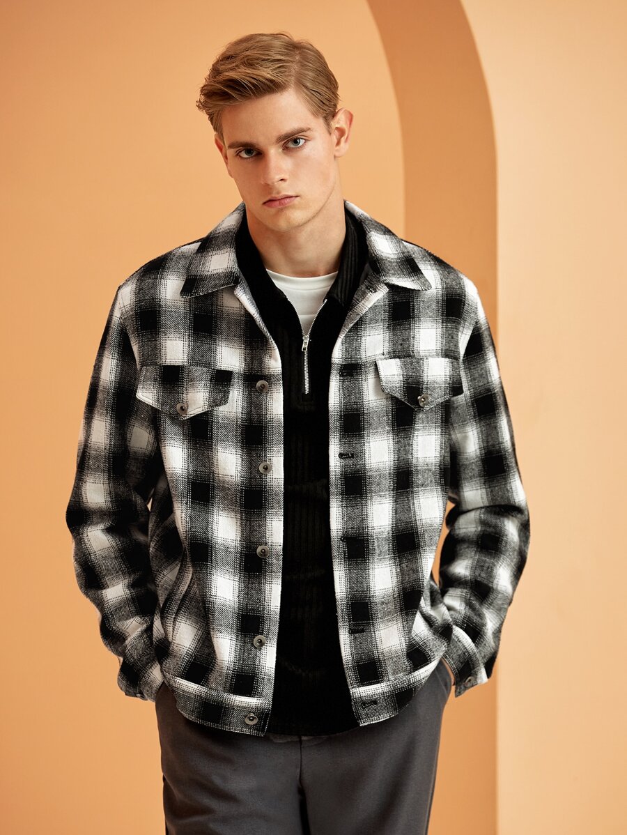 معطف مربعات ملونة بتفاصيل رفرف تويد للرجال
