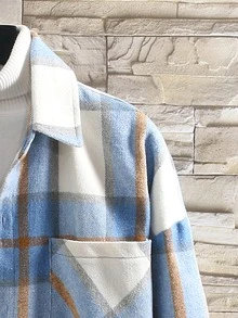 معطف بصف ازرار بجيب مرقع مربع النقش للرجال