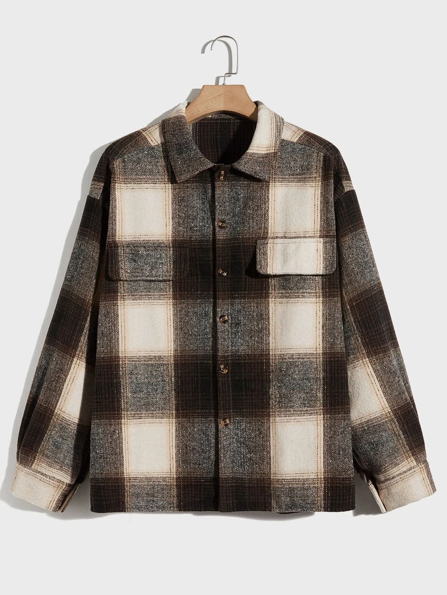 معطف طباعة مربع النقش منخفض الاكتاف للشباب