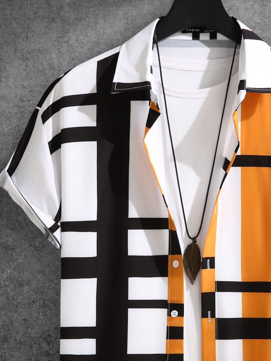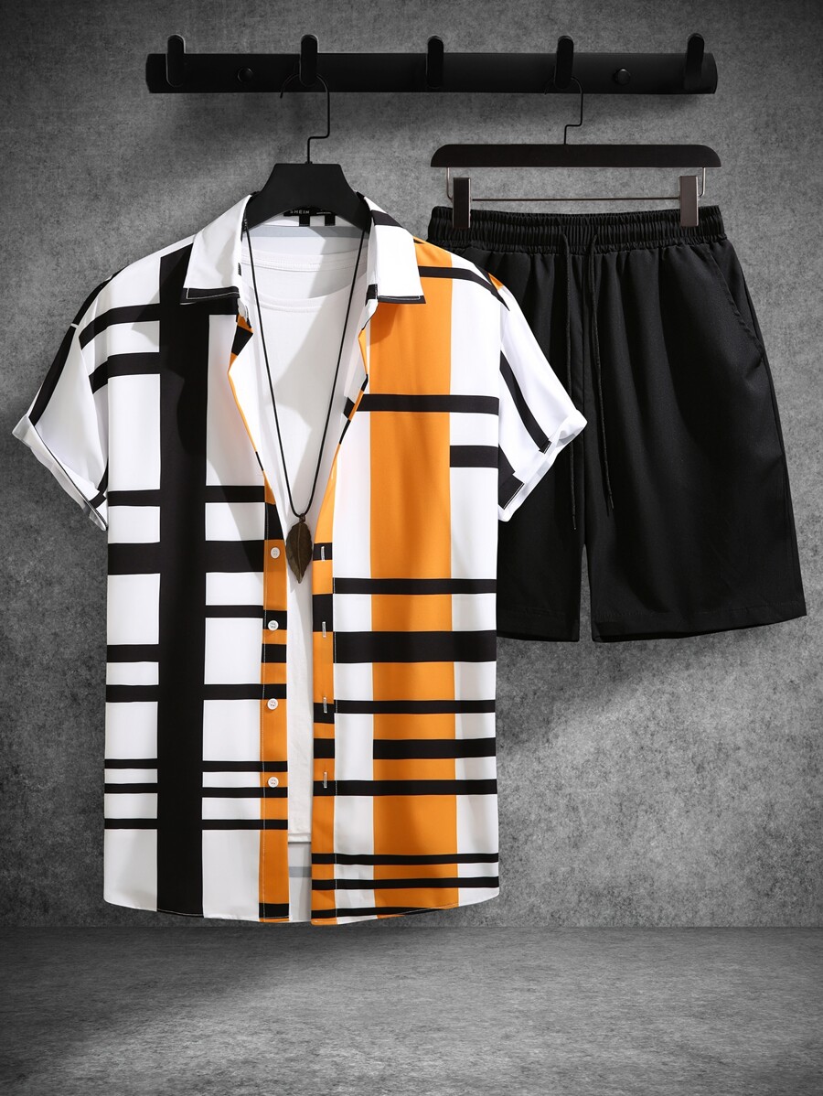 للرجال طباعة مربع النقش قميص و بنطلون قصير بدون تي شيرت