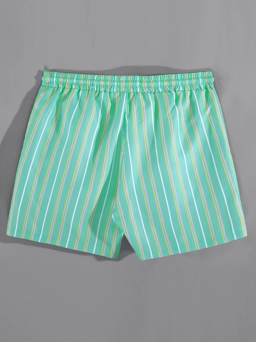 للرجال شورت سباحة ترانك عشوائي مخطط رباط خصر