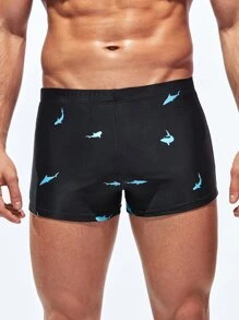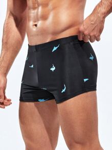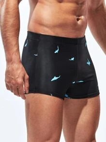 شورت سباحة ترانك عشوائي طباعة سمك القرش ساق مربعة للرجال