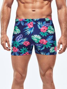 للرجال شورت سباحة ترانك عشوائي بطباعة استوائية