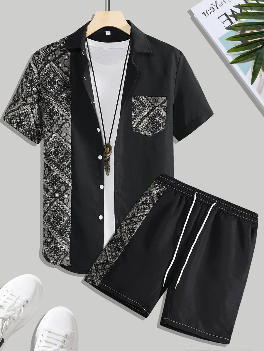 قميص وشورت مطبوع بوشاح رجالي ، الشاطئ ، كتلة اللون ، الخروج ، الزوج ، هولوغرافي