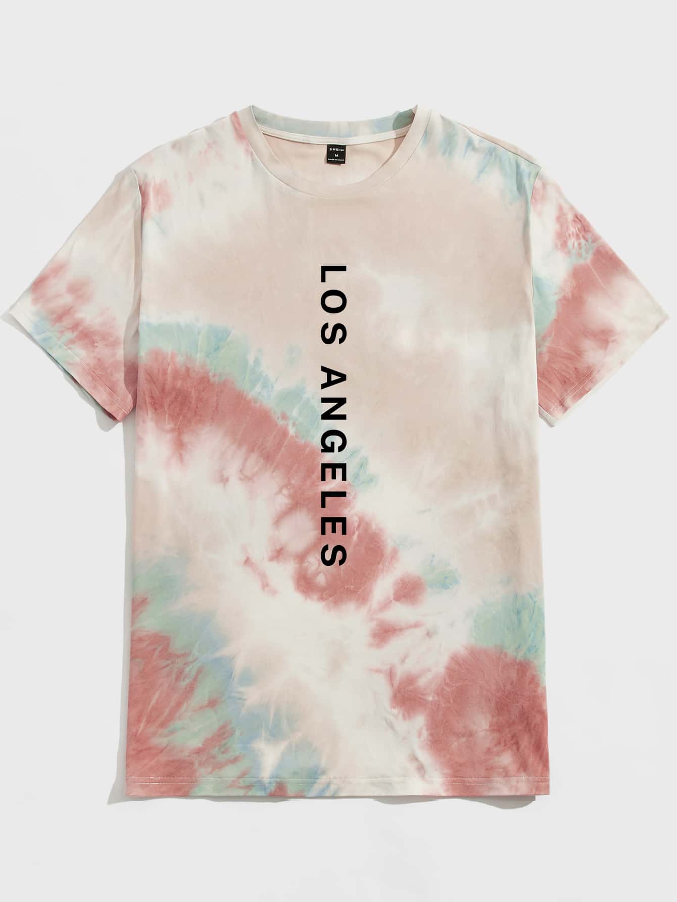 تي شيرت صبغ متعادل بطباعة أحرف للرجال
