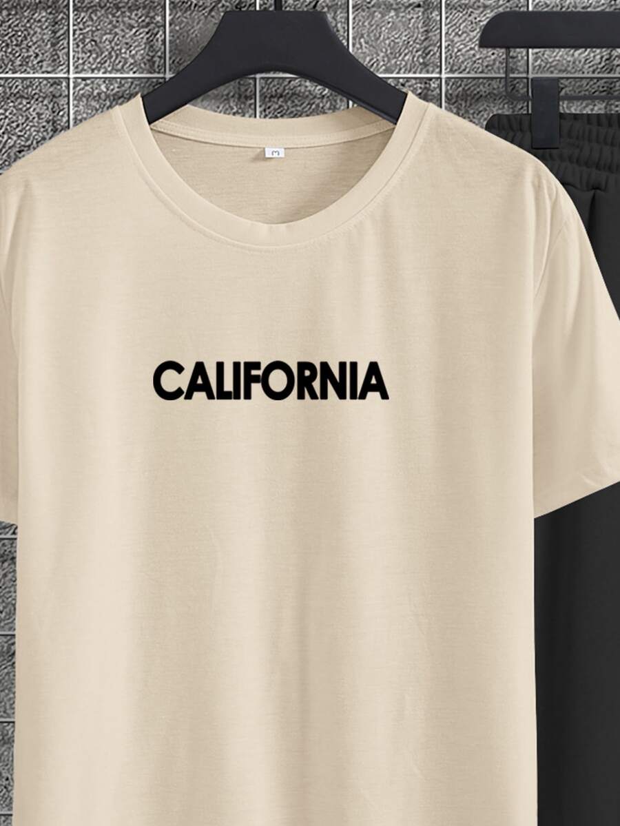 للشباب شجرة بطباعة أحرف تي شيرت مع رباط بناطيل رياضي