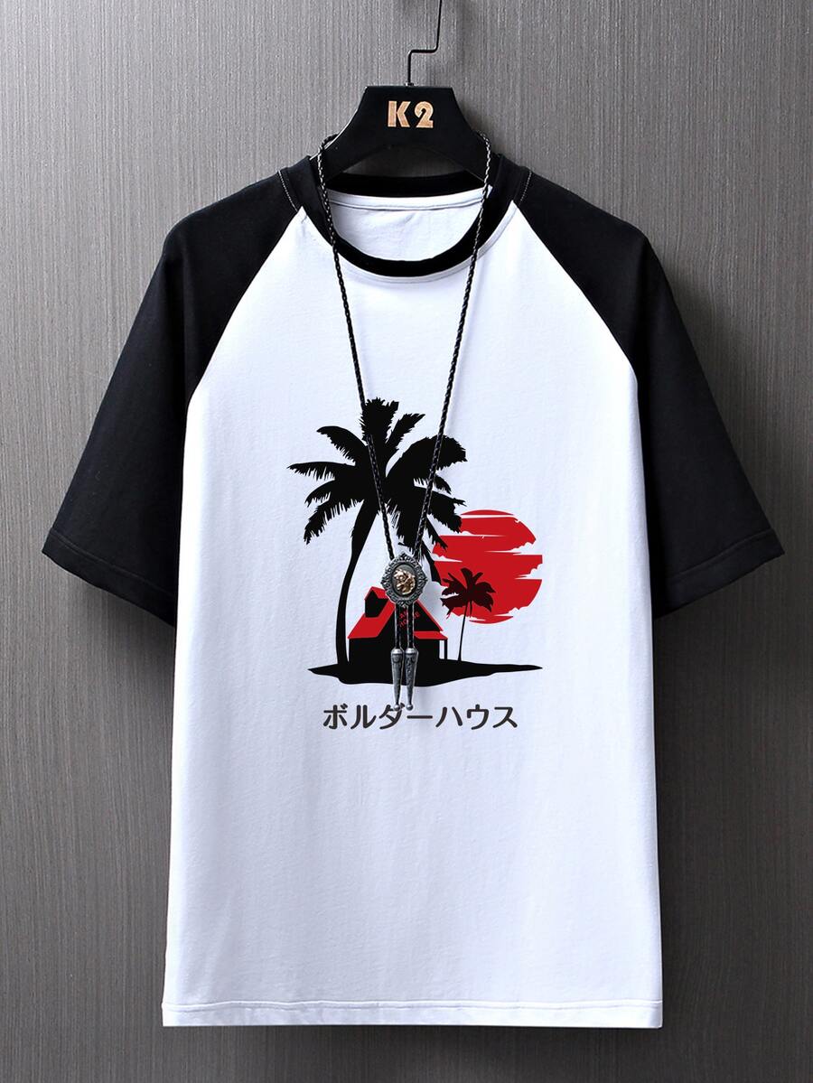 للشباب تي شيرت بجرافيك استوائي ألوان متباينة