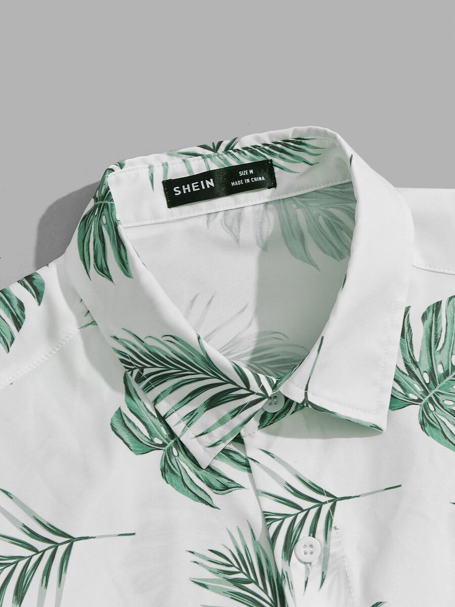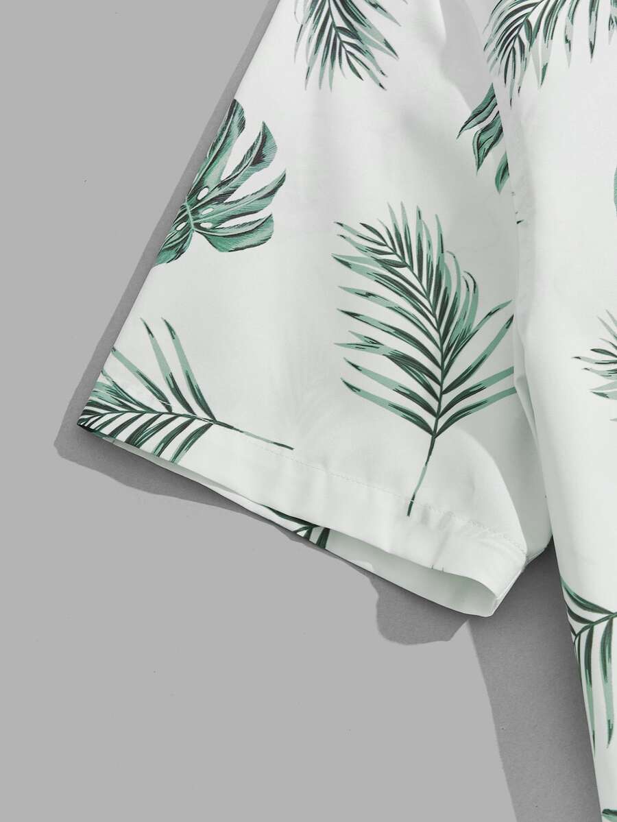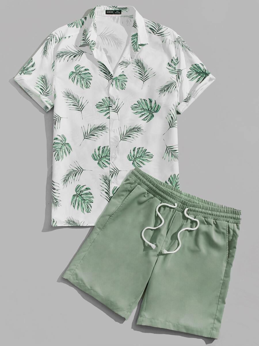 للرجال بطباعة استوائية قميص مع رباط خصر بنطلون قصير