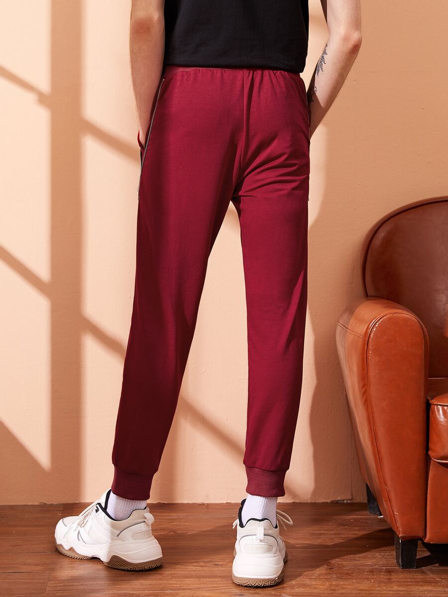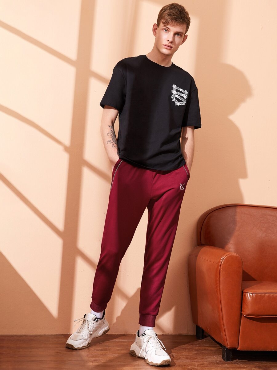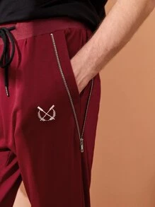 سروال رياضي مطرز جرافيك وبتفاصيل سستة للرجال