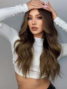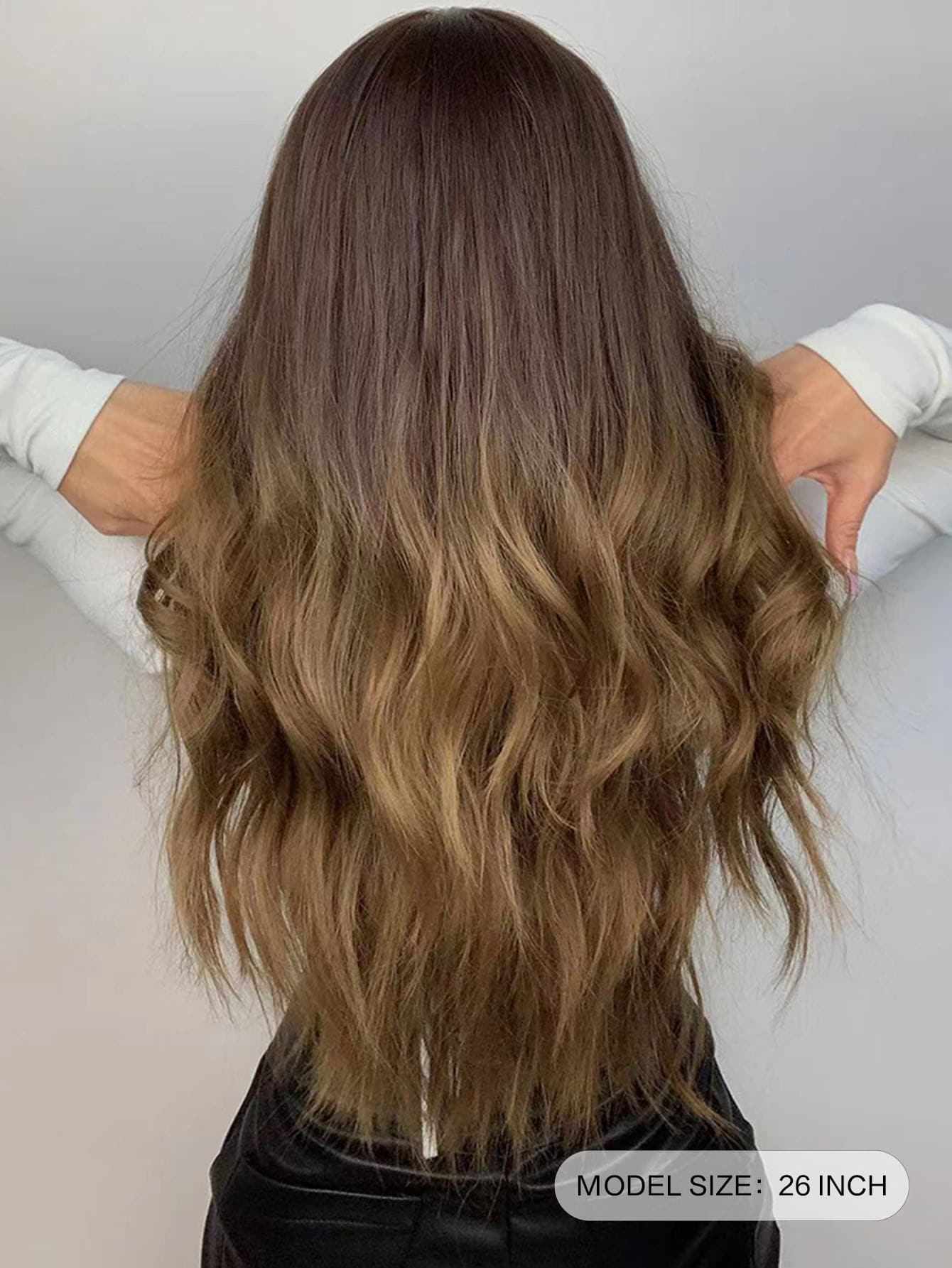 شعر إصطناعي متوسط الجزء الكيرلي بالأومبري باللون البني ، 26 بوصة ، جذاب وجميل لحفلات ولاستخدام اليومي للنساء باروكة