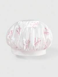 Kawaii قبعة نوم من الساتان، خلفية بيضاء مع أزهار الكرز