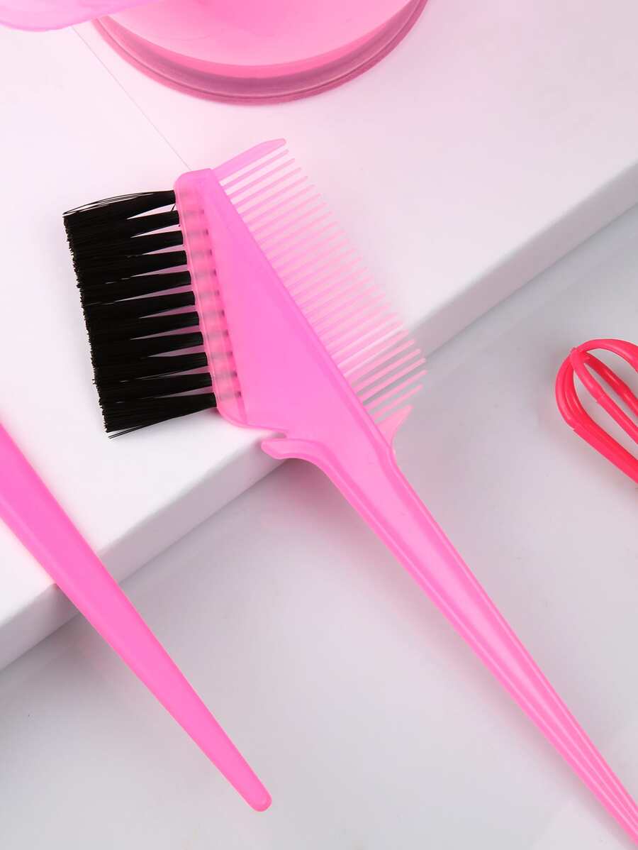 مجموعة أدوات صبغ الشعر ، 6 قطع ، وعاء خبز الشعر الوردي ، غطاء للأذنين ، فرشاة مشط وصبغ ، وصالون لتصفيف الشعر