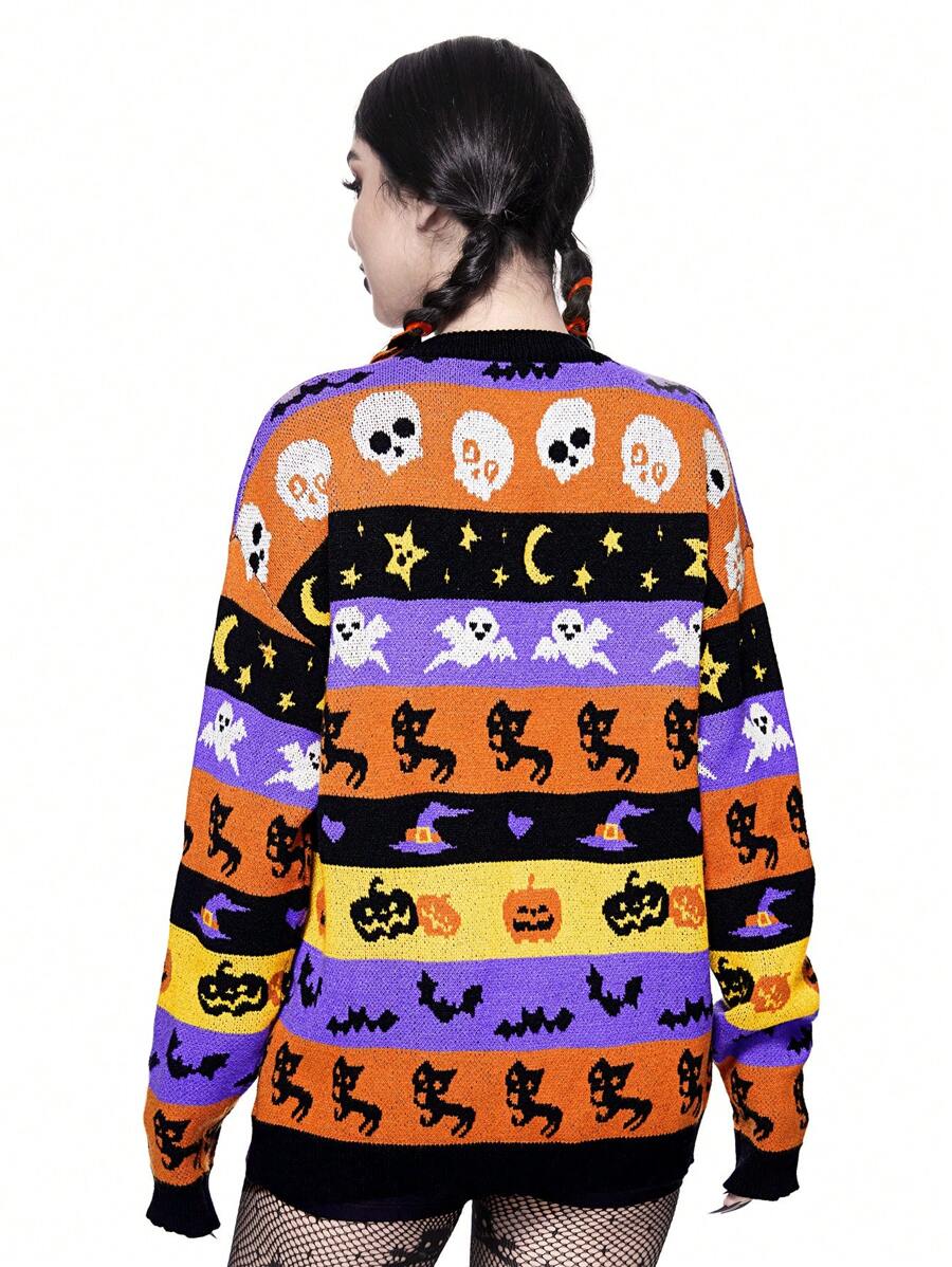 كنزة صوفية مضفر القطة والساحرة والقرع لعيد الهالوين للنساء