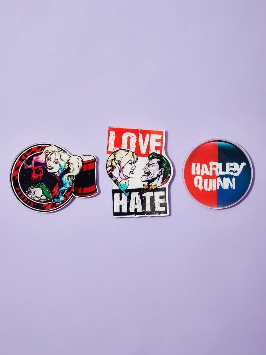 Harley Quinn | ROMWE مغناطيس ثلاجة حرف بجرافيك شخصية رسوم كارتون بتصميم دائري 3 قطع