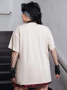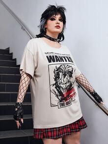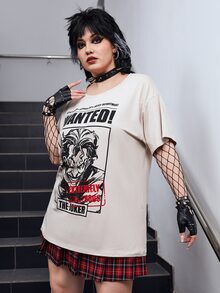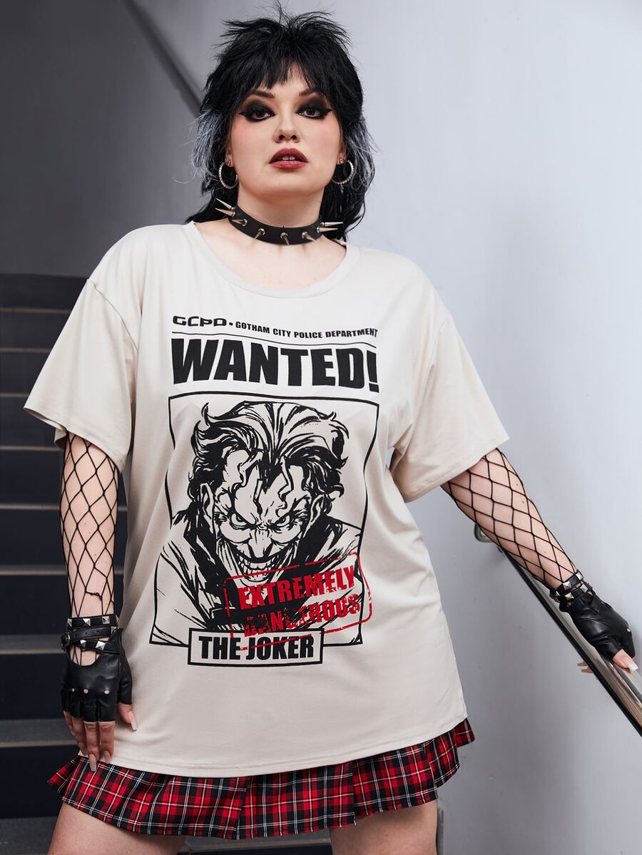 Harley Quinn | ROMWE تي شيرت منخفض الاكتاف بجرافيك عبارة وشخصية مقاس كبير
