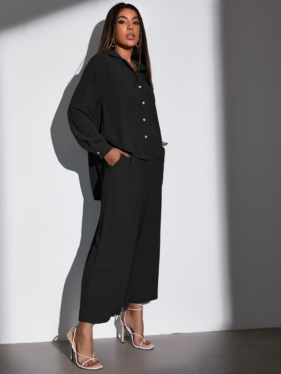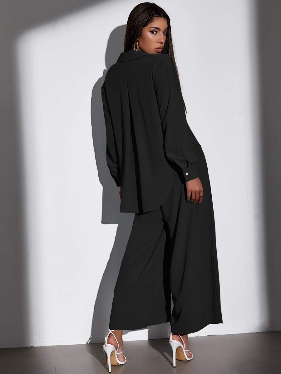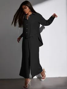 طقم بنطلون بساق عريض مع بلوزة عالي ومنخفض