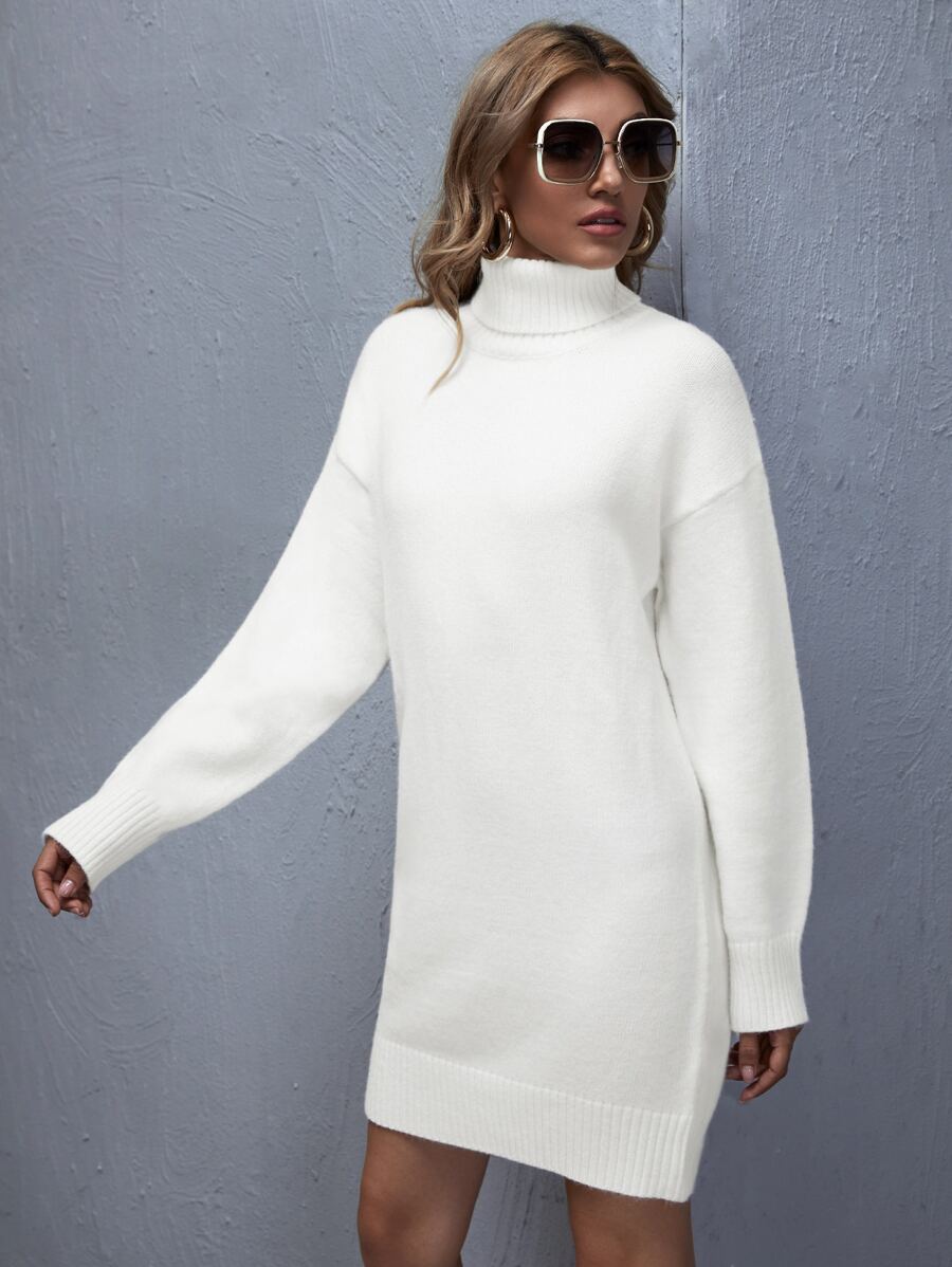 الفستان الصوفي واللون الخالص وسقوط الكتف والياقة العالية