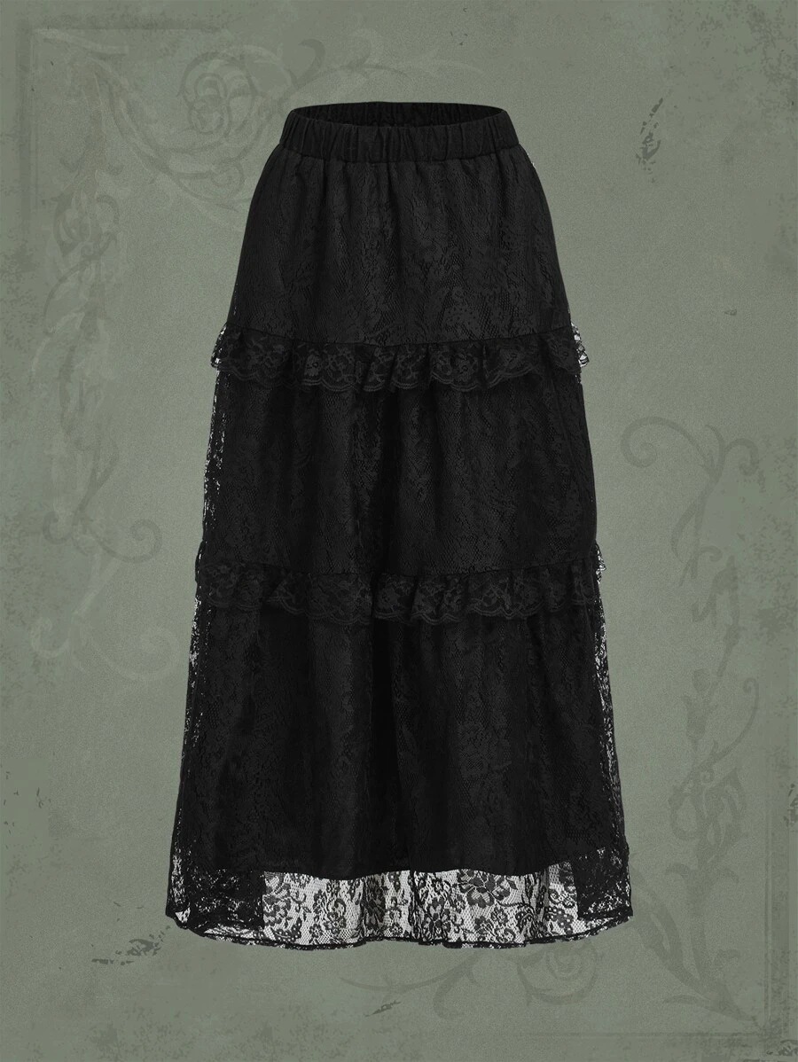 Goth تنورة دانتيل خصر عالي حافة مكشكشة