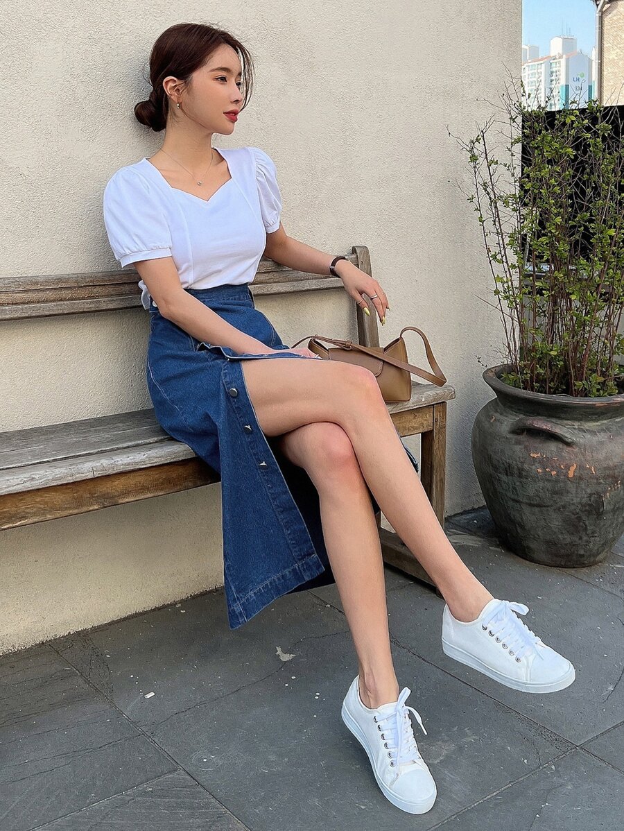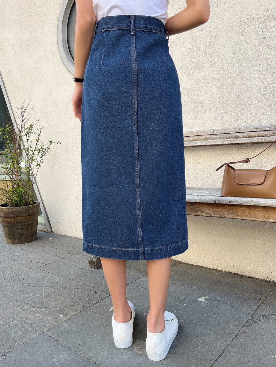 تنورة جينز ذات خصر عالي بأزرار أمامية