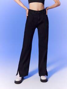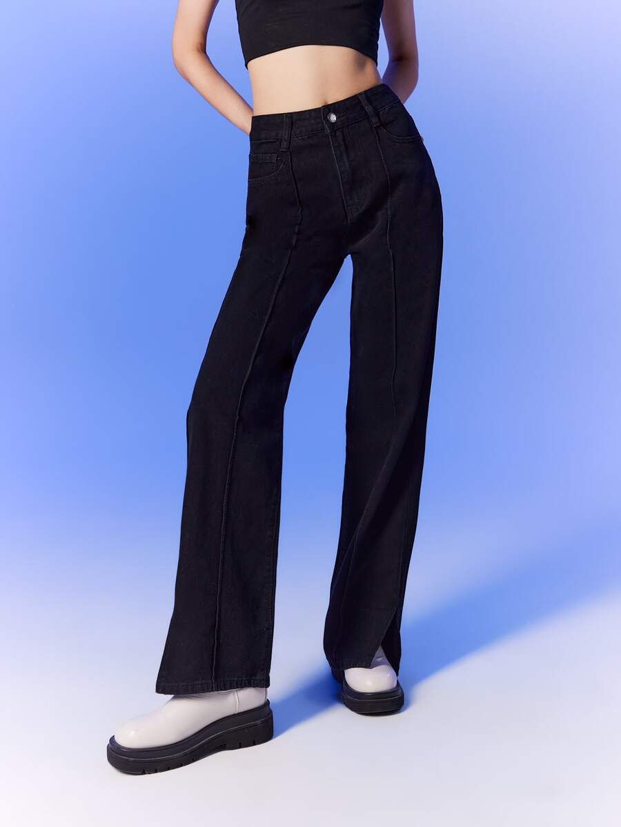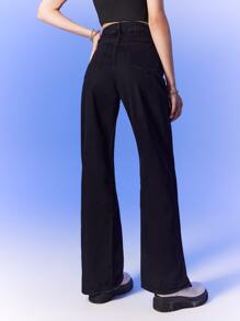 جينز الزر الجيب ممزق سستة مغسول الصاف