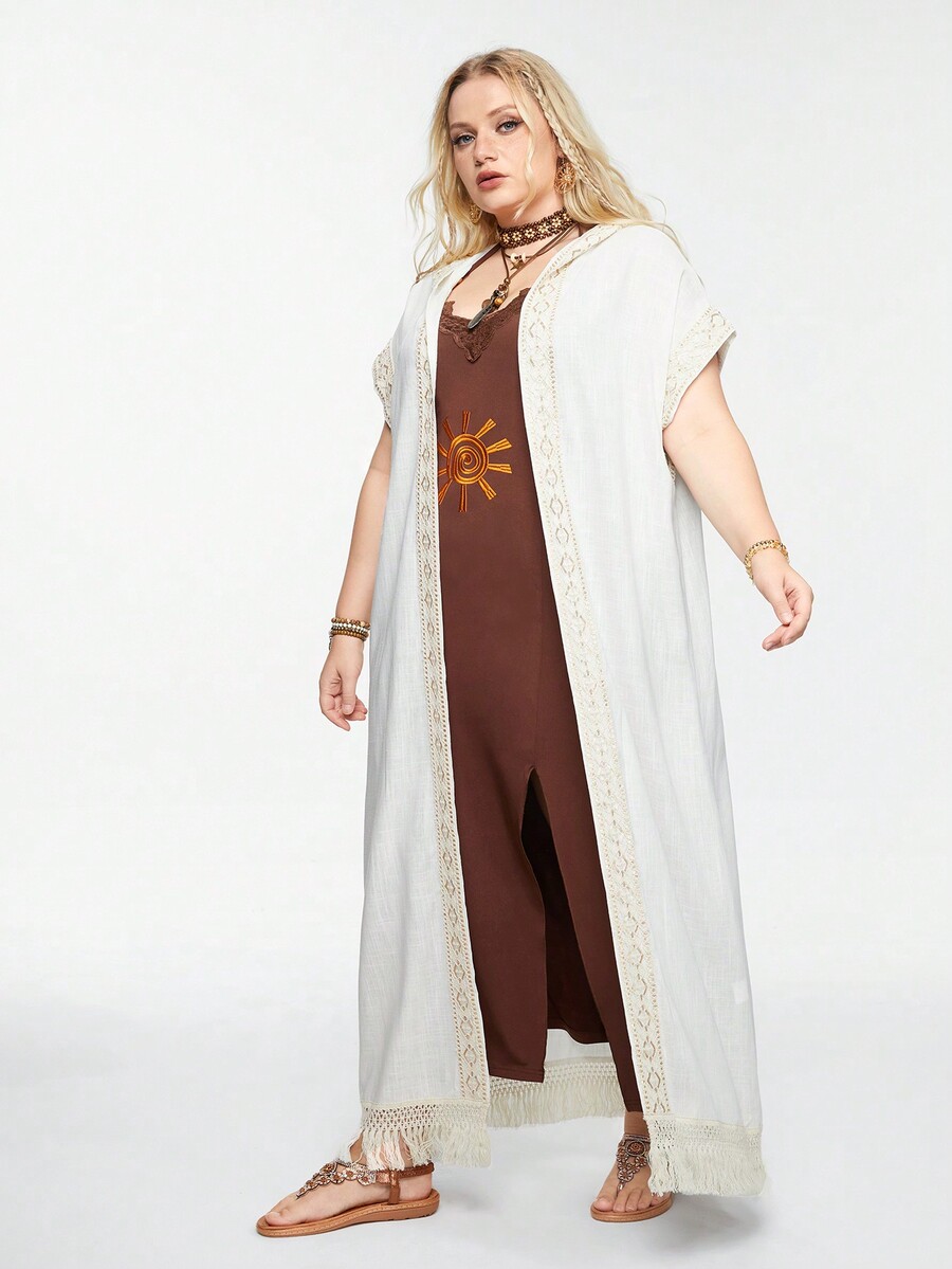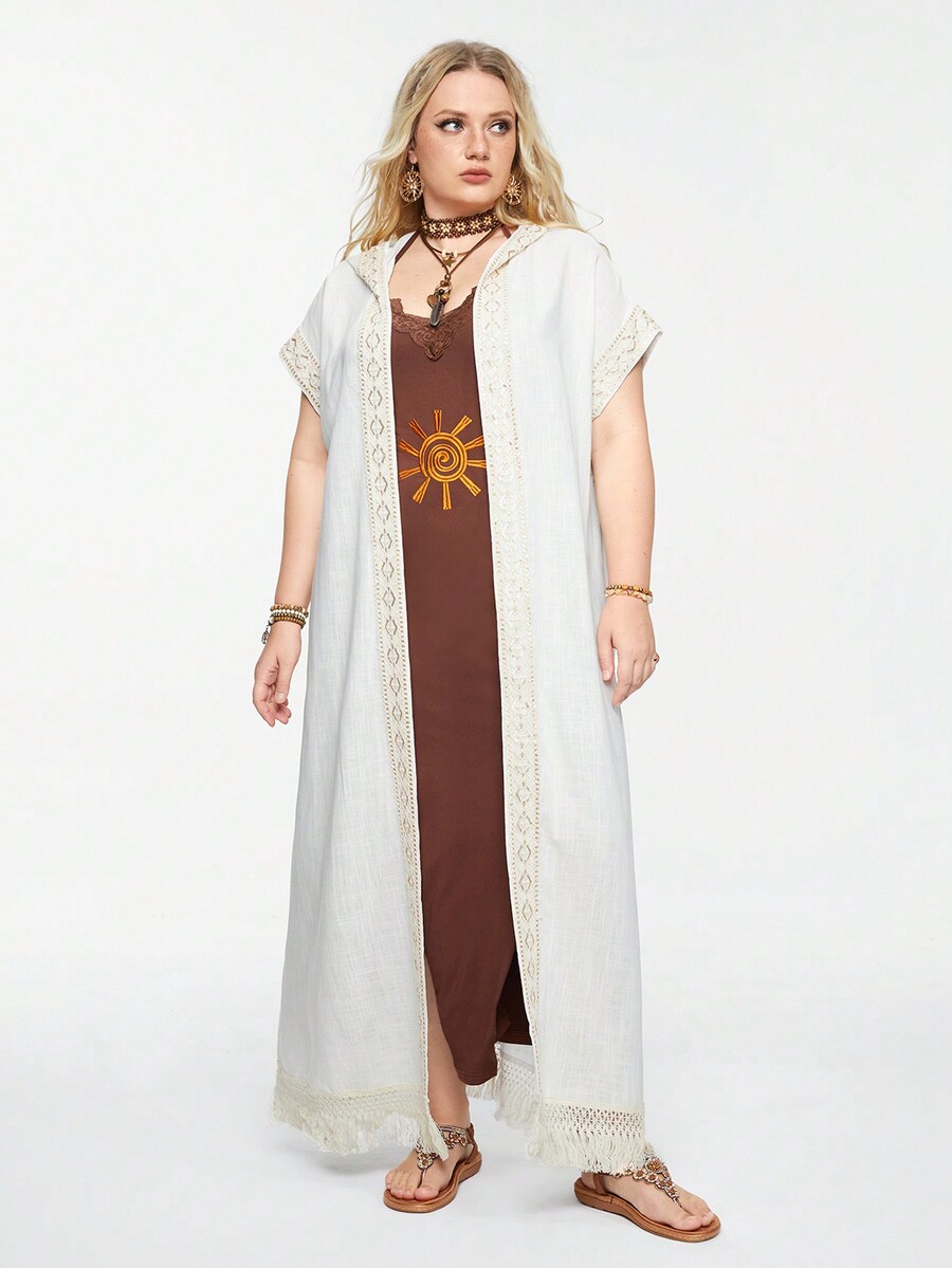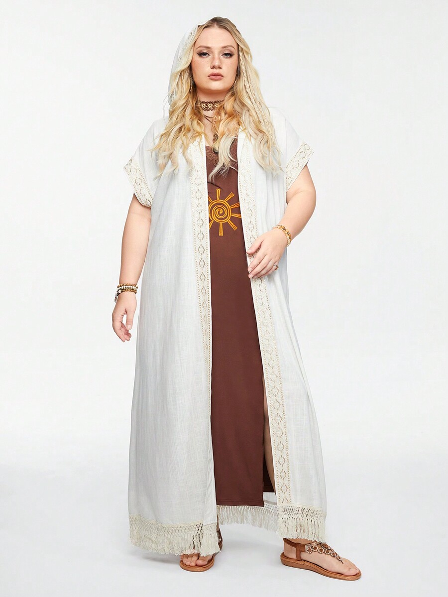 Hippie تغطية محبوكة بطبعة بوهيمية للأجازات مع غطاء رأس لحماية البشرة من أشعة الشمس